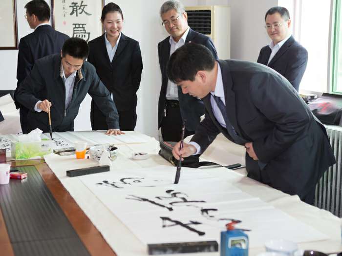 为弘扬传统文化,丰富员工业余生活,5月6日上午,乐动平台app官网-乐动(中国)举办了首届书画艺术学习交流活动。本次活动邀请了中国书法家协会会员孟云飞博士、中国书法家协会理事张铜彦先生、中国书法家协会编辑出版委员会副主任王荣生教授、人民艺术家协会理事于瑛先生等国内知名书画大师,各位书画大师在活动现场进行了艺术创作表演,挥毫泼墨,交流技艺,为乐动平台app官网-乐动(中国)留下了数十副墨宝,还对部分员工的书画作品进行了悉心指导。公司员工现场欣赏了书画大师的艺术创作,并聆听了有关书画艺术鉴赏知识的介绍,部分员工还在活动现场进行创作,听取书画大师的讲解示范和点评。