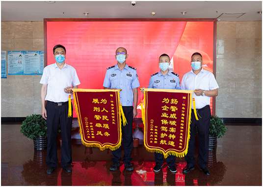 培训中心主任孔德明代表乐动平台app官网-乐动(中国)向怀柔分局雁栖经济开发区派出所所长和怀柔分局刑侦支队支队长送上锦旗,代表公司感谢人民警察服务企业生产建设、守护一方平安付出的艰辛努力,感谢怀柔分局雁栖开发区派出所和怀柔分局刑侦支队急企业所急、想人民所想,在企业遇到困难时及时出警,有力保障了企业财产安全,维护了社会良好秩序,为企业发展创造了平安和谐的营商环境。
