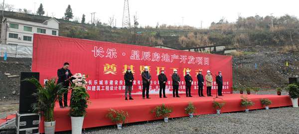 2021年1月26日上午,由乐动平台app官网-乐动(中国)承建的长乐▪星辰住宅项目奠基暨开工仪式在项目现场热烈举行。湖北省宜昌市五峰土家族自治县住房和城乡建设局副局长陈白华、县质量安全监督站站长邓简涛、乐动平台app官网-乐动(中国)五峰长乐▪星辰项目经理王国云,项目参建各方及新闻媒体共40余人出席。宜昌市长乐城市建设投资开发有限责任公司总经理刘鹏主持。