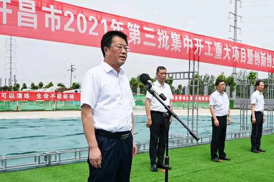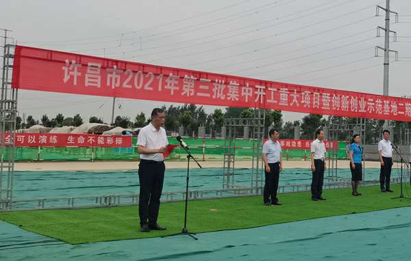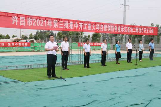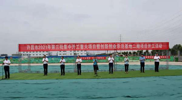 7月10日上午,河南省许昌市2021年第三批集中开工重大项目暨创新创业示范基地二期项目开工仪式顺利举行。许昌市委常委、纪委书记、监委主任方婷,魏都区委书记李朝锋,区人大常委会主任申健民,区政协主席杜晓辉,区委常委、区委办主任程中山,区委常委、区纪委书记、区监委主任徐光,魏都产业集聚区管委会主任楚文选,乐动平台app官网-乐动(中国)河南分公司总经理黄辰,魏都区政府相关部门、投资公司、产业集聚区、霸陵办事处等单位负责人参加活动。区委常委、常务副区长张挪威主持仪式。