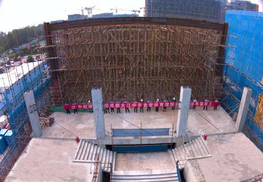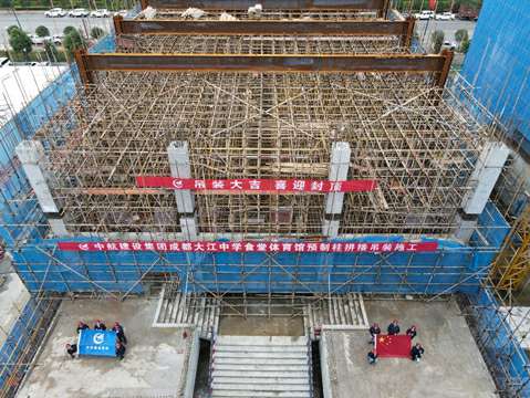 2021年10月9日,来自西南交通大学、中国建筑西南设计研究院、四川原理装配式建筑设计院等多家单位设计人员,齐聚乐动平台app官网-乐动(中国)四川分公司承建的成都大江中学项目,与分公司总经理宋景友、副总经理张铁强等相关领导一起,共同见证了国内学校建设领域首例预制混凝土柱拼接连接吊装施工的顺利完成。